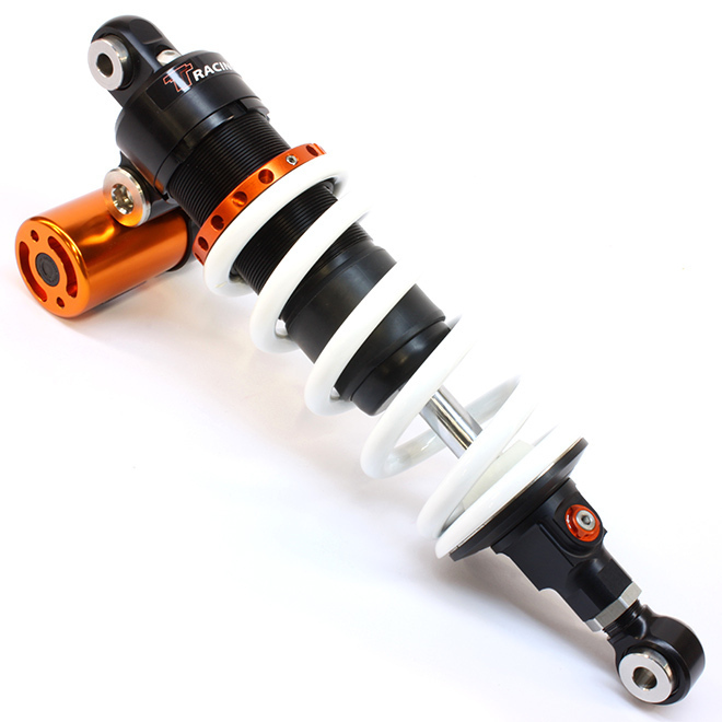 High performance shock absorber with adjustable rebound and Hi-Lo speed compression damping. Preload adjustable. Length adjustable.
