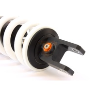 Note: Upgrade shock absorber with adjustable rebound damping. Preload hydraulically adjustable for varying loads.This shock absorber uses a damping shim stack specifically developed for its application. The aluminum shock absorber housing creates maximum thermal stability by optimal heat removal. Not only leads this to stable performance but also to a longer lifetime of the shock and its oil. To create the best performance for every model we use high flow pistons, low friction seals, and dedicated shimstacks. We use heavy duty components like microfinished induction hardened quenched&tempered 42CrMo 16mm piston rods, best quality bearings and stainless steel bushings. Every shock can be opened and serviced, or tuned for the customer's application. For all shocks there is a range of springs from softer than standard till harder.