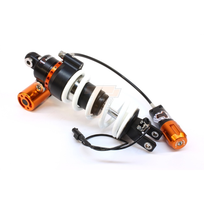 This shock absorber fits plug and play into the motorbike with the original connector. This ensures that the original controls on the handlebar remain operational. There is no need for a cancelation kit or any other modification to the motorbike or its wiring harness. The shock absorber contains the Tractive DDA damping valve (Dynamic Damping Adjustment). The motorbike's control unit does not notice electrical differences between the original damping valve and the Tractive DDA damping valve. However, the Tractive DDA valve is more stable, has a larger adjustment range and adjusts faster than the orginal valve.
