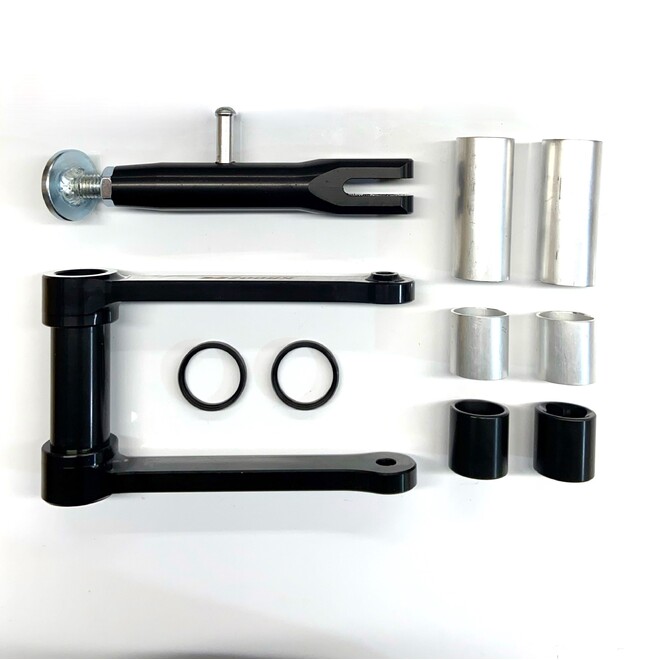 This combined Rear Shock Link / Front Fork Lowering Kit suits the CBR 250/300 before Honda changed to direct mount to swingarm with no shock linkage.