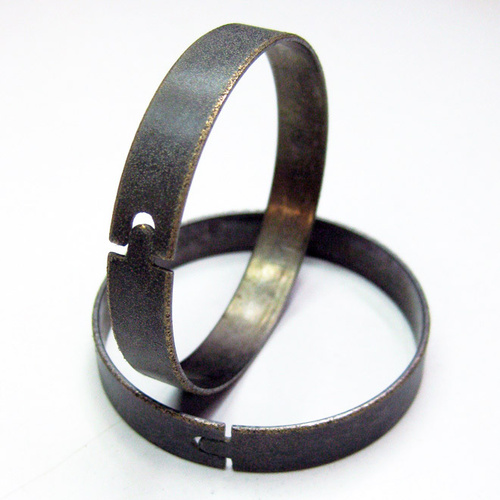 Replaces the flexible plastic piston band with a hard metal split ring